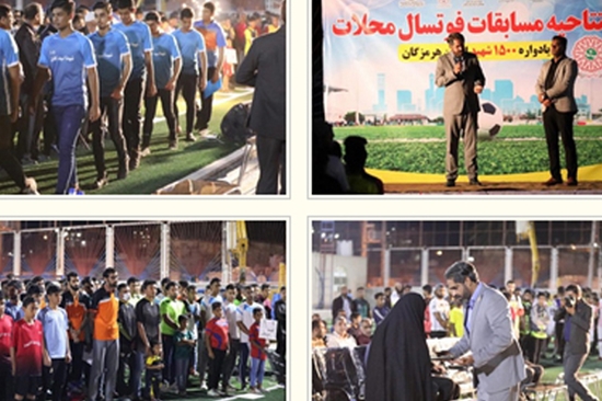 مراسم افتتاحیه مسابقات فوتسال لیگ محلات بندرعباس یادواره ۱۵۰۰ شهید استان هرمزگان در زمین ورزشی سرخ آبی پوشان کوی ملت برگزار شد.